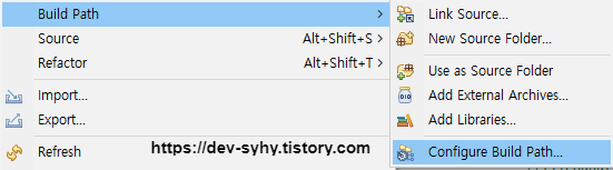 프로젝트 우클릭 - Build Path - Configure Build Path 선택