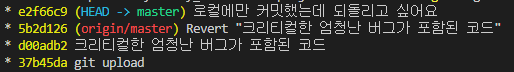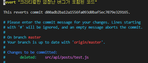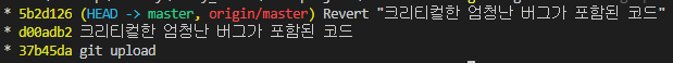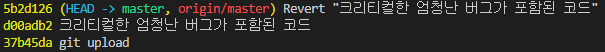 $ git revert <크리티컬한 엄청난 버그가 포함된 커밋 지정>