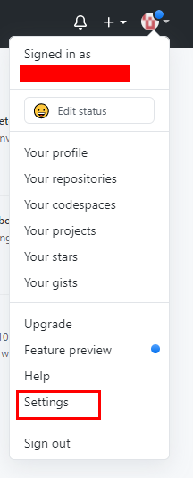 1) Github 사이트 접속 후(로그인) 우측 상단에 Settings 클릭